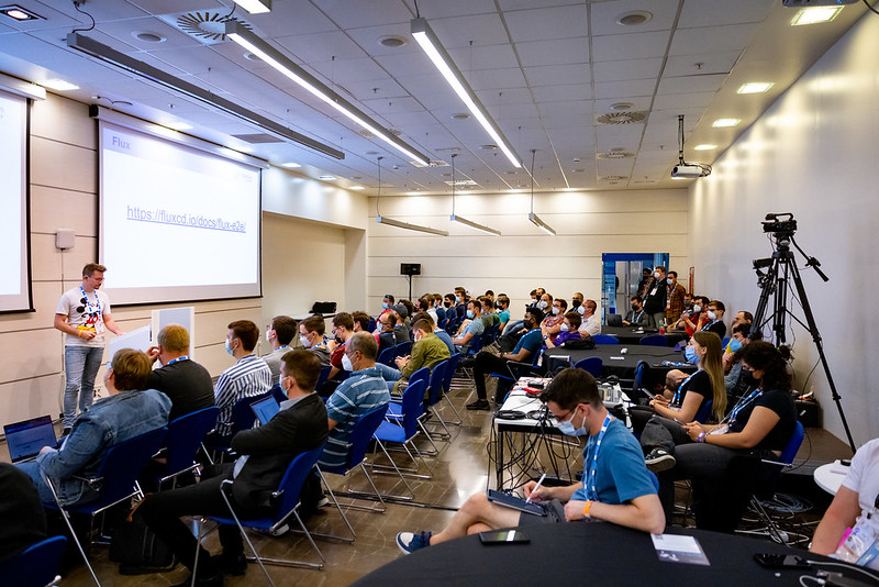 Here we go #KubeConEU 🎉 Flux office hours starts at 1PM room 2H. Come join us 🤗 pic.twitter.com/RfcTioi58Q