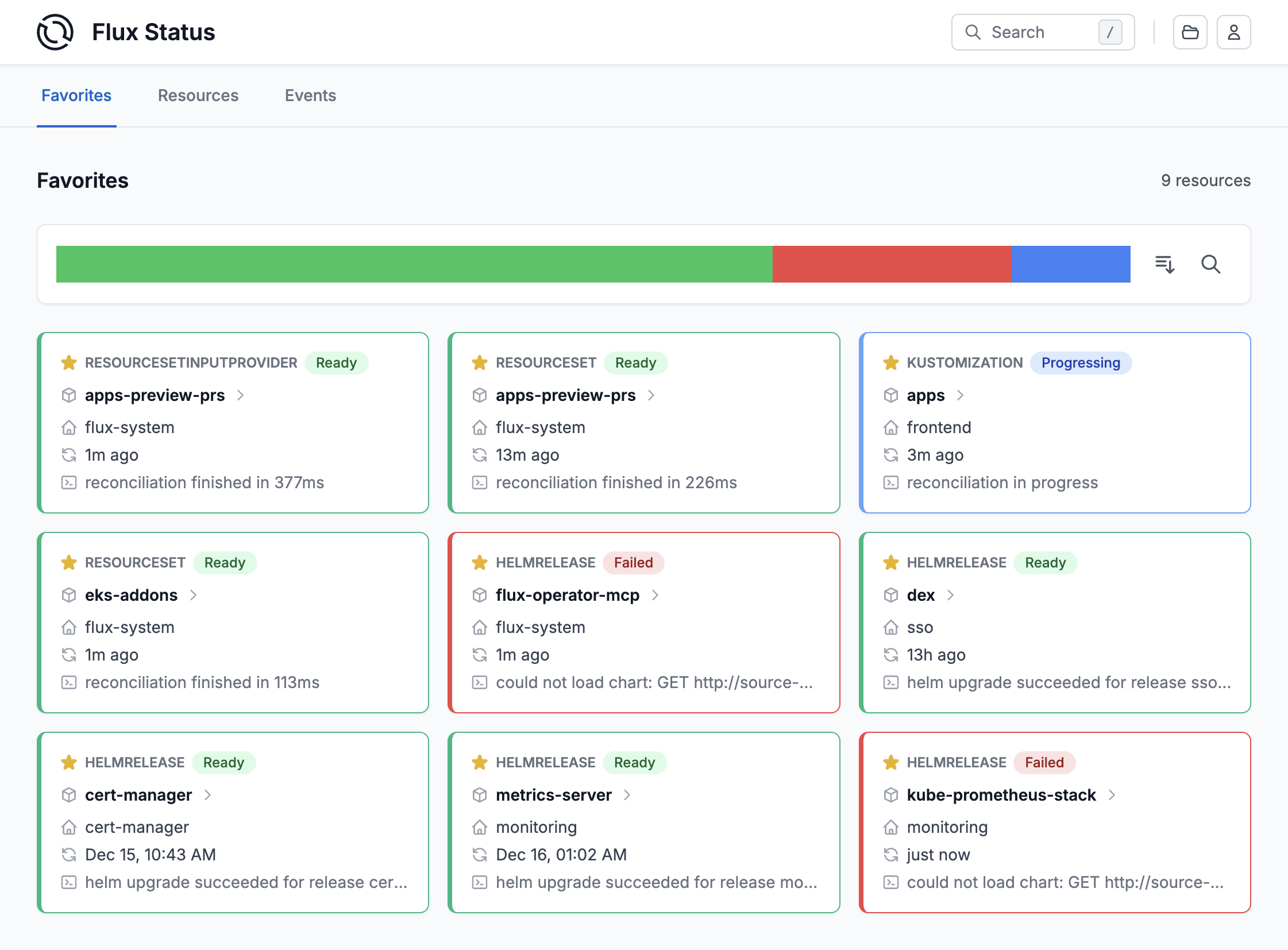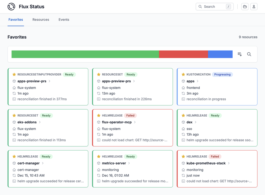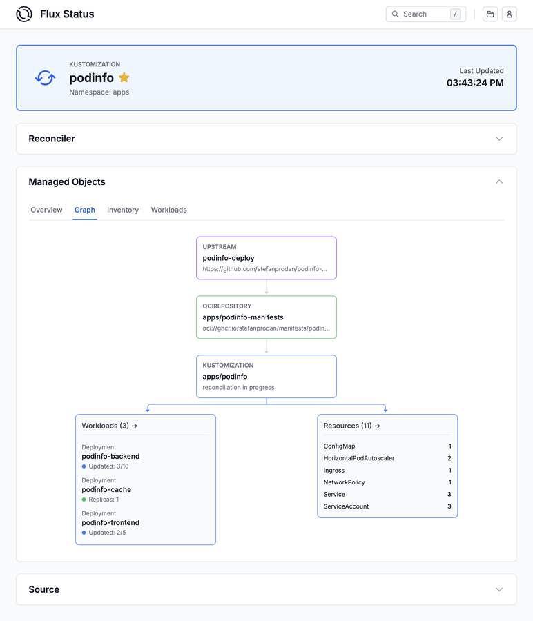 - Deep-dive views for ResourceSets, HelmReleases and Kustomizations