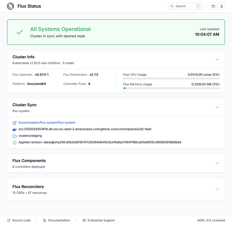 giving you full visibility into what Flux has deployed — useful for debugging, auditing, and